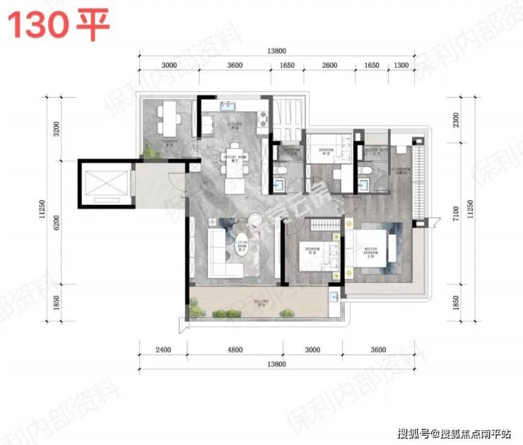 130平方米四房大约77套,尤其是2栋南向、对望万象城都会景观的130平四房,货量非常稀缺,仅有15套左右。户型整体窗地比非常高,大阳台、大飘窗设计,其中厅出阳台为7.8米宽,主卧270°转角无柱飘窗。