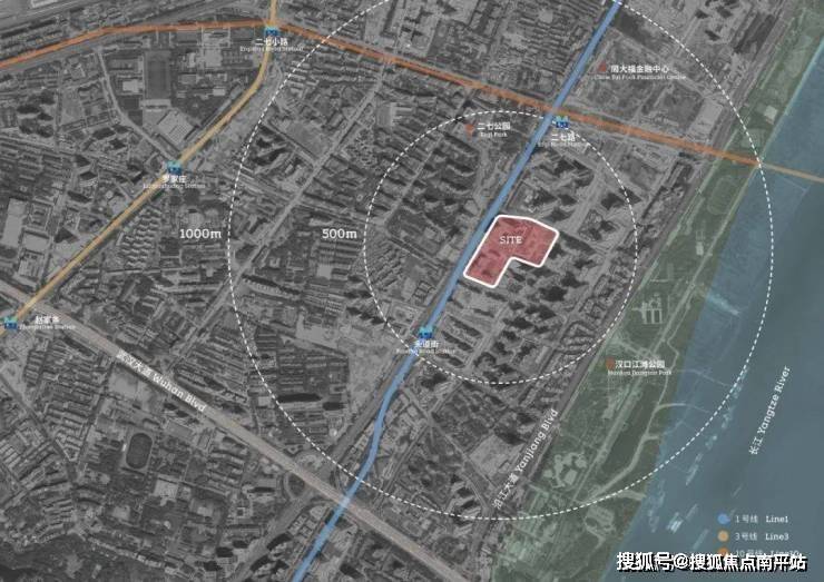 地块四周高楼林立,汇集16座200米以上的超高层建筑。北面近500m高的周大福金融中心达到滨江天际线最高点,东部毗邻的绿城黄浦湾以近似城墙的形态阻隔了地块与长江之间的大部分视线。