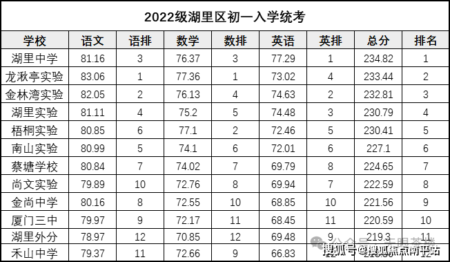 天琴出门0距离,就是金林湾实验学校。2022年湖里区初一秋季入学统考成绩排名如下: