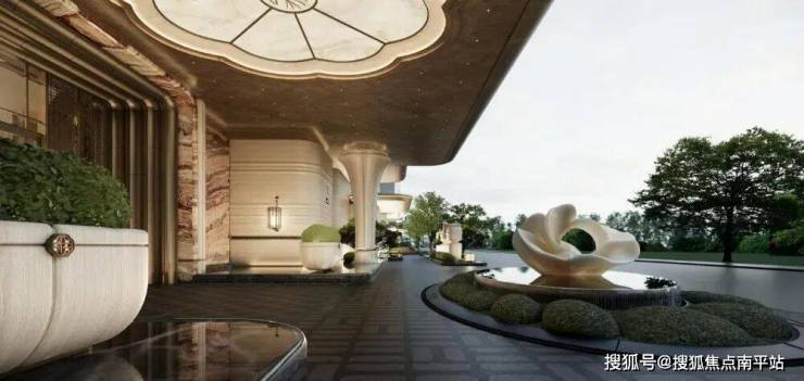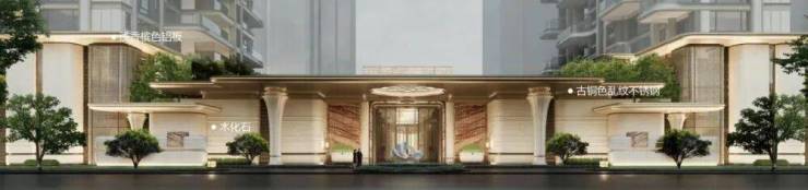 同时,古铜色不锈钢材料的加入,进一步给“兰亭雅颂”注入学府气质,古铜色温润复古的色泽,低调而奢华,近似古籍装帧、文房铜器的质感,暗合学区的人文沉淀,门廊通透舒展,既匹配学区的人文氛围,又以精致细节锚定社区雅致调性,成为学府住区的标识性门面。