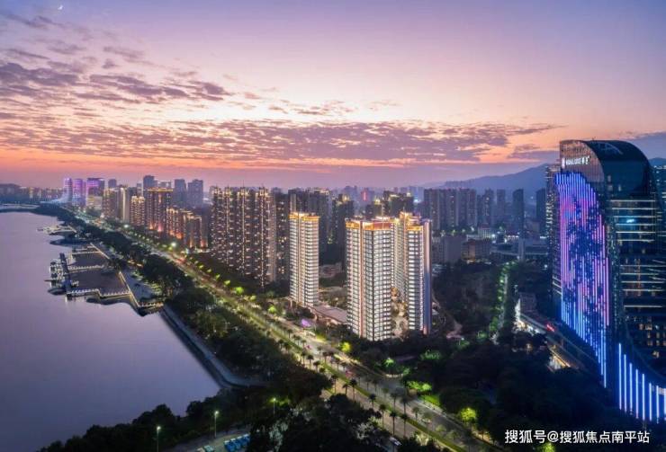 项目落址厦门海沧湾芯,坐拥海沧湾一线头排景观资源,东南向瞰景布局与楼栋排布,实现了IMAX级观海面,(几乎)户户瞰海,对望鹭江道、滨北等鹭岛天际线景观。