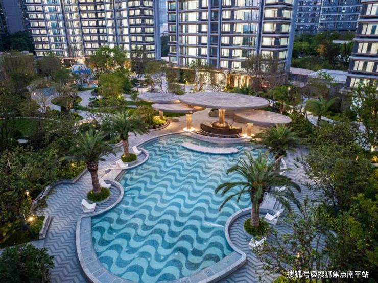 园林设计上,以海上庄园古典的中轴对称布局,中央水景高质感的流光水境让海洋生活美学生动立体、跃然其上。“海上繁花”廊架作为中轴线的视觉焦点,采用雕塑形制,呈现自然曲线美与生命力,和流动的水景相得益彰,多维度打造森屿和鸣的高奢园林谧境。