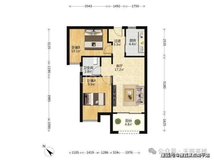 嘉悦里二期约64平户型,论性价比,唯一竞争对手是中C67平2房。嘉悦里二期2房是4开间朝南,南向采光面宽我测算近4.8米;中C是3开间朝南,南向采光面宽我测算近3.6米,加上更大窗墙比, 很明显嘉悦里二期两房采光性更强。