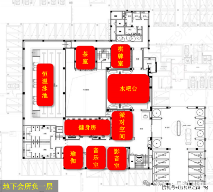 据悉,项目将打造约1700㎡超配感下沉会所,具备 12大功能,包含健身房、瑜伽室、音乐室、PARTY ROOM(有KTV、桌球)、茶室、影音室等多元互动场景,并且配置了泳池。