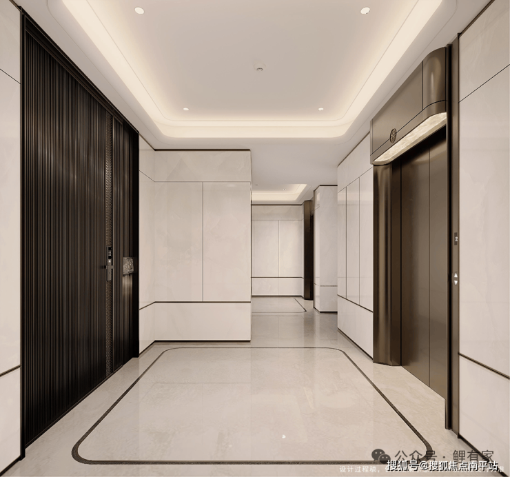 这份奢雅的归家体验,向下延伸至地库空间。落客区以透光光膜顶营造均匀光感,呼应艺术感十足的楼栋标识,指引归家方向;臻装地下大堂,更将品质、美学与功能完美融合。