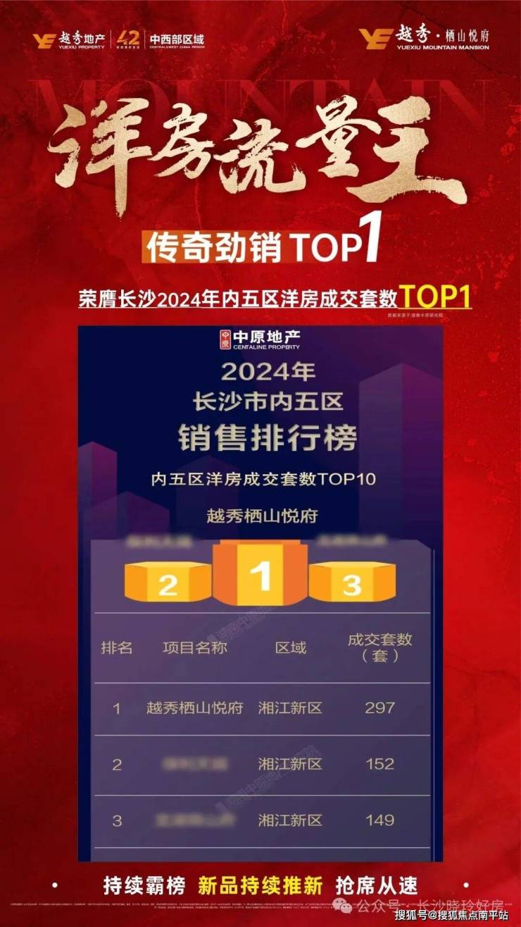 根据湖南中原研究院公布的数据显示,越秀栖山悦府荣膺长沙2024年内五区洋房成交套数TOP1,流量王者,持续霸屏,好房当燃不让!