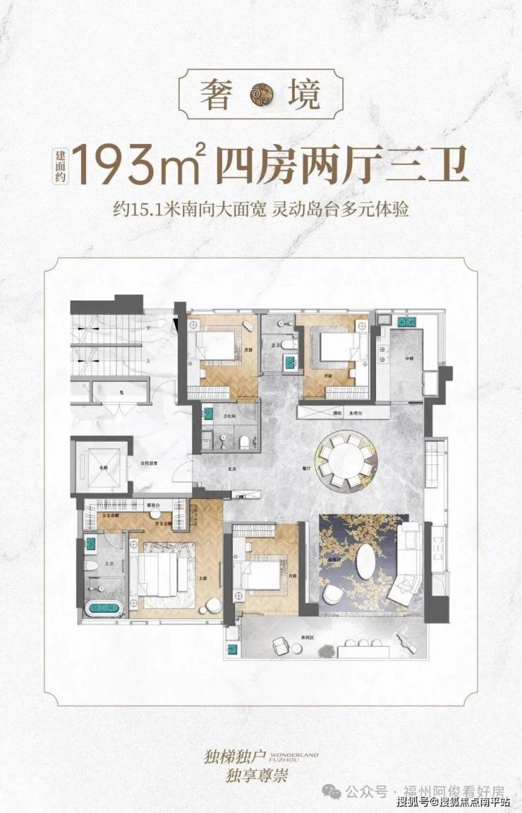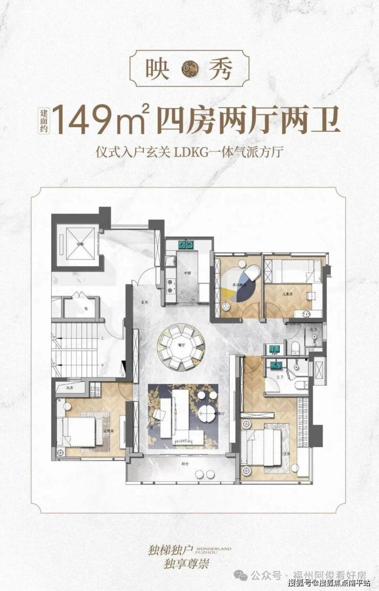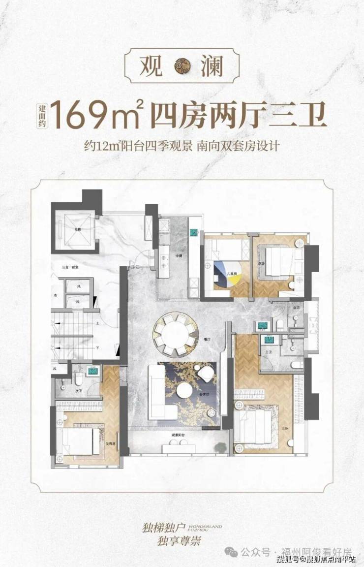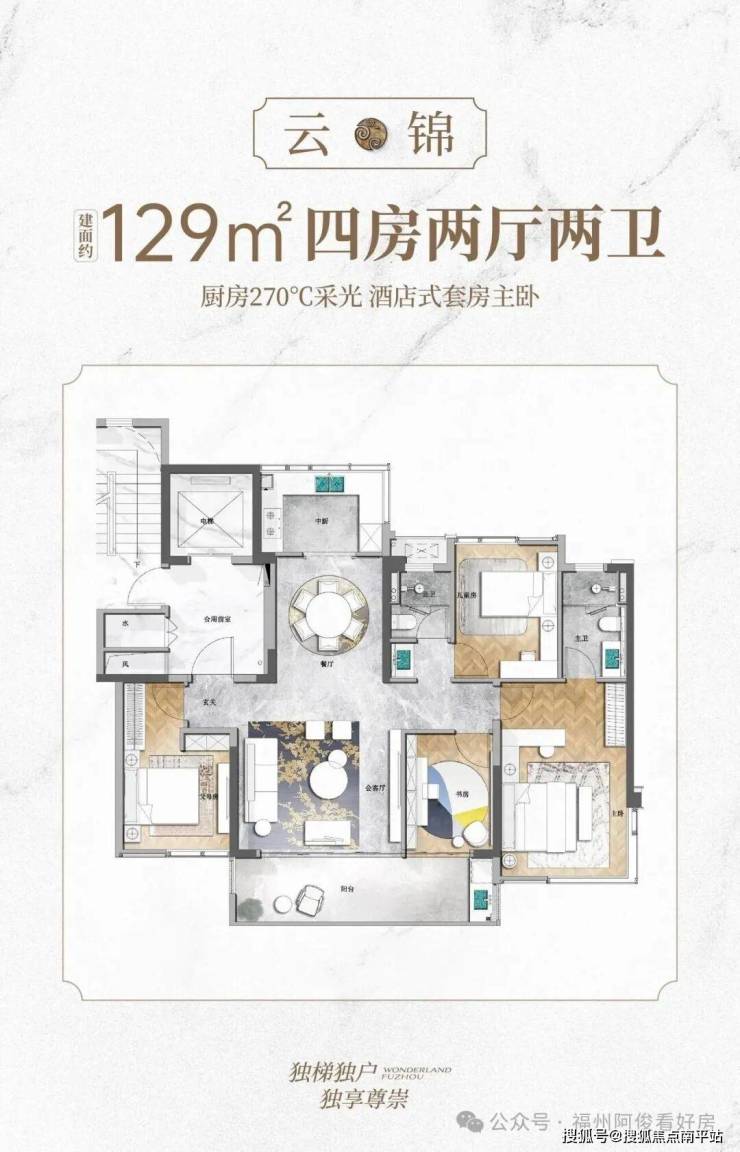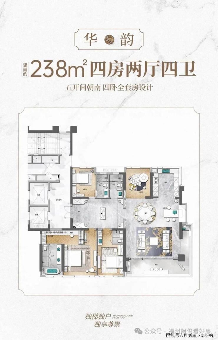 户型:129-238㎡四房大平层,两梯两户(独立入户)