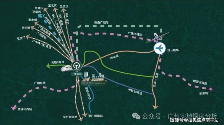 项目一路之隔的广州北站,就是花都唯一、广州规模最大的TOD,集6高铁、3城际、4地铁汇聚枢纽。自驾的话项目临近广花高速与机场高速。