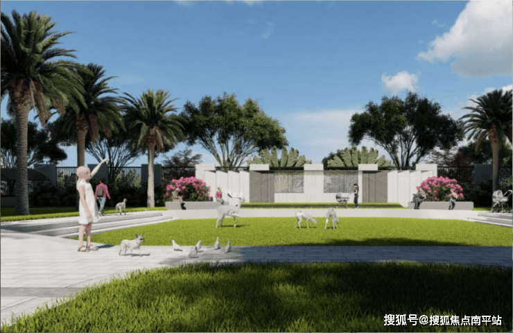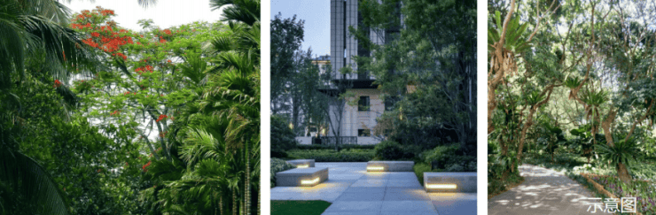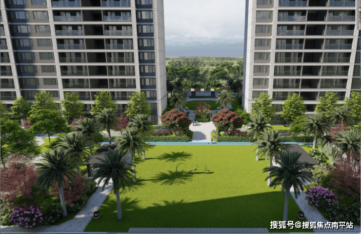 以热带园林点缀归家动线,并形成开阔的公共活动场域,为邻里活动提供高质量社交空间;