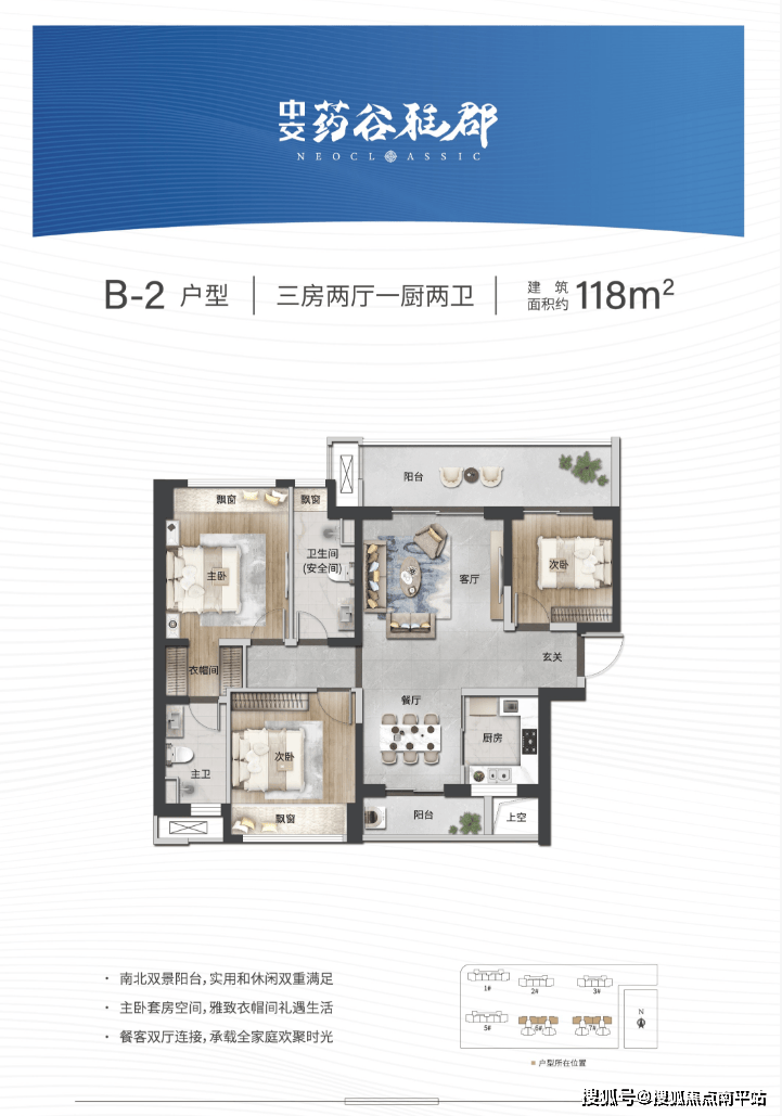 产品规划:建面约98-118㎡幸福三房