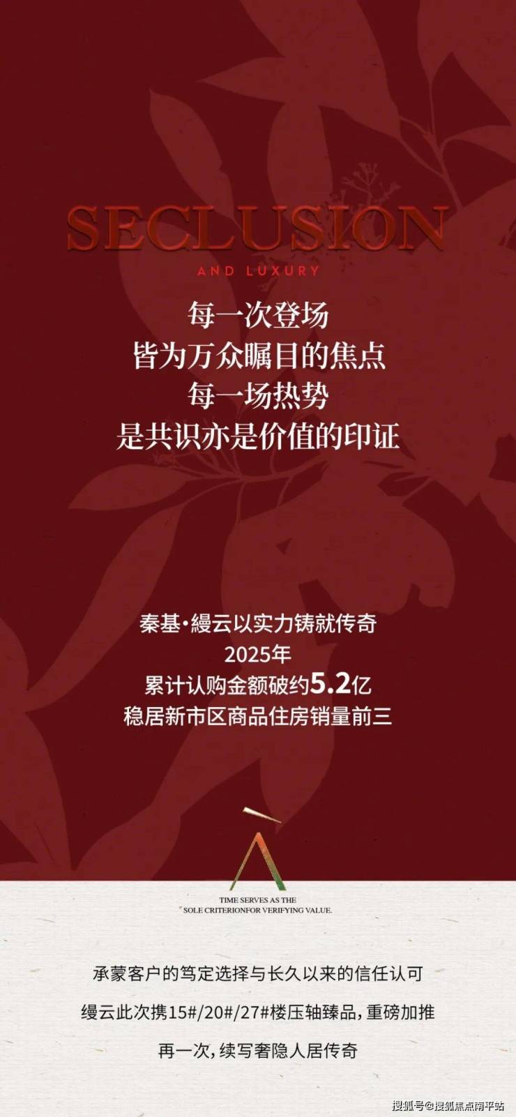 时间行至2025年年末,秦基·縵云 年度压轴新品——15#/20#/27 #楼载誉登场 ,低密臻境的奢侈规划、四层洋房的尊崇尺度、四代宅楼王的鼎级配置等... 多重臻贵价值强势引爆,注定将引发首府高阶的又一次共识热藏!