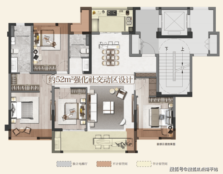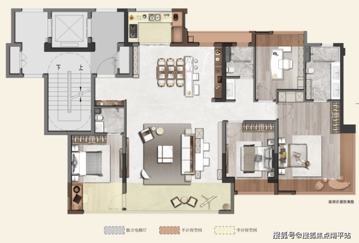这一设计直击痛点:上叠业主首次能享有带私家车库入口的独立地下室,真正实现“有天亦有地”;下叠则获得更完整的花园空间。更绝的是,上下叠可合并为 约347㎡的类联排独院 ,为终极改善需求提供了前所未有的灵活选项。