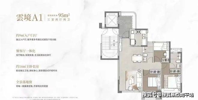 95平3房2卫:独立电梯厅,阳光入户,甚至部分户型270度采光前厅,这就是典型的产品迭代!