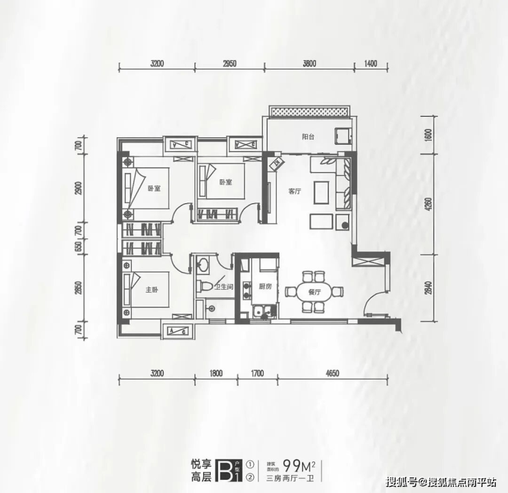 在售户型:建筑面积约99-100㎡三房两厅一卫、约116-119㎡三房两厅两卫