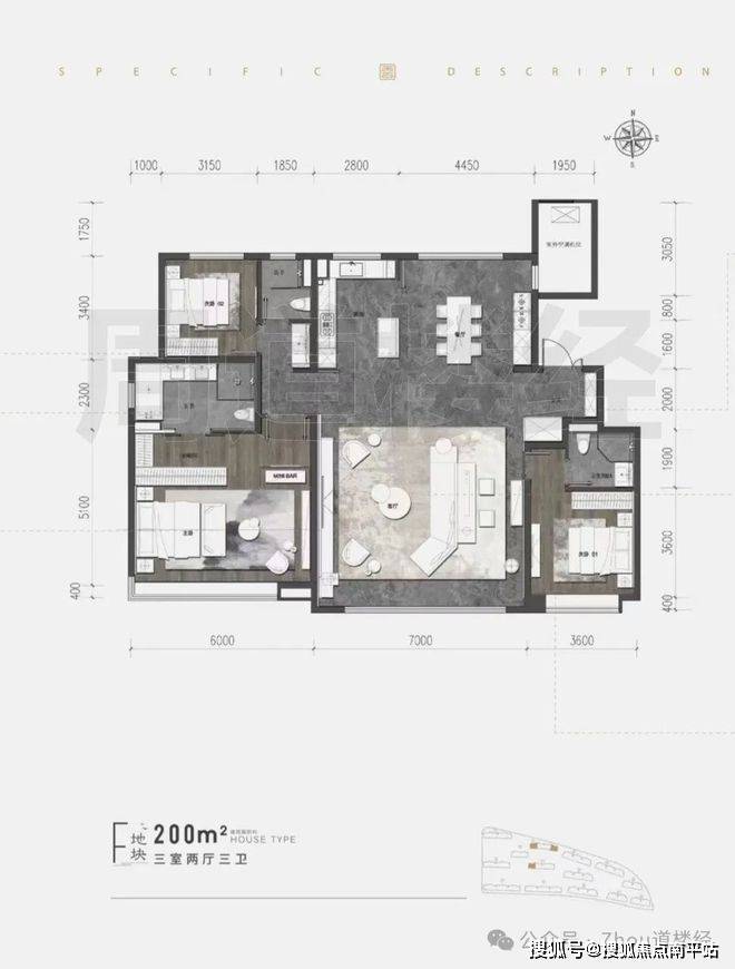 200㎡三室三卫