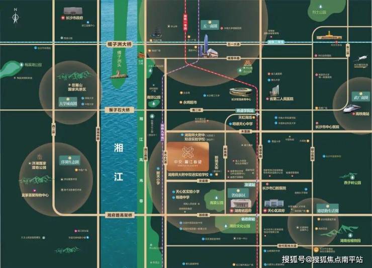 步行直达湘江风光带,私享山水洲景观,天心滨江公园、南郊公园、海棠公园、湘府文化公园打造城市“翡翠项链”,拥揽项目本身生态景观园林,畅享绿意鲜氧生活