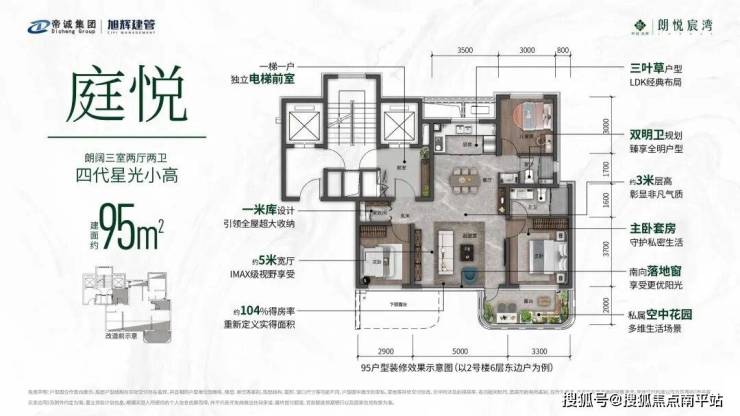 得房率:小高 85 平: 97%,小高 95 平:104%