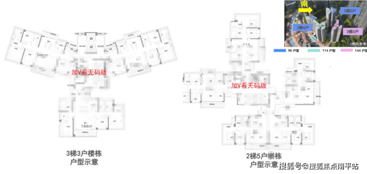全南向设计,主推建面约为90-114-144㎡的三至四房。