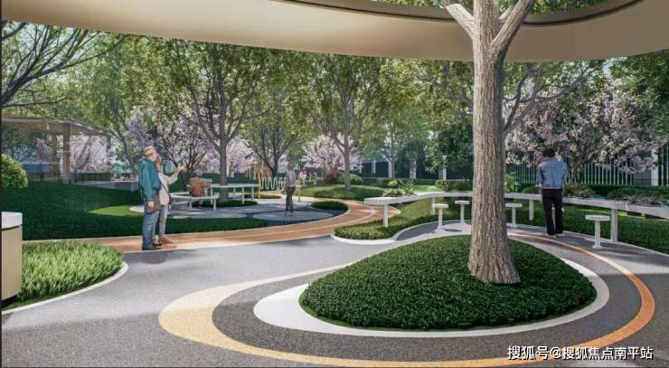 「轻氧花园」精选绚丽海棠、山杏等名木,围合约200㎡多功能活动场地
