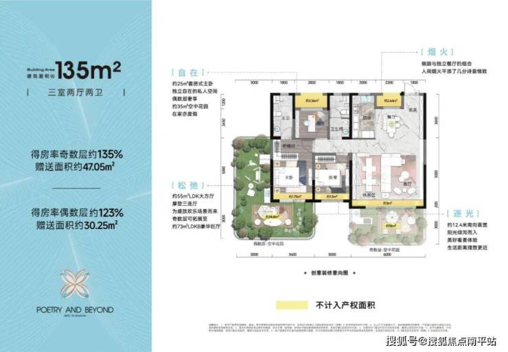 最高约135%实得率|最大约35㎡天空花园100%赠送