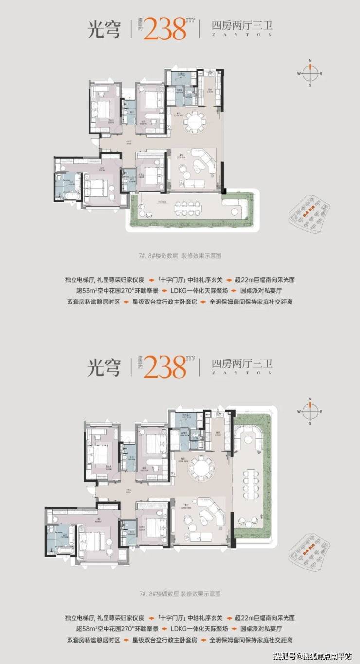 其中 四代宅皆享超大空中花园,创新奇偶层90°错层设计,实现270°环幕采光与零对视私密性。