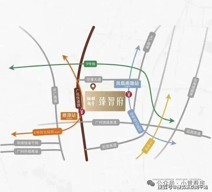 距地铁18号线北延段(在建)凤凰南路站,直线距离约1公里(数据来源:百度地图),5站到广州东,链接湾区5城,这也是臻智府其中的一个亮点,它是广花路上离18号线凤凰南路站最近的一个盘。