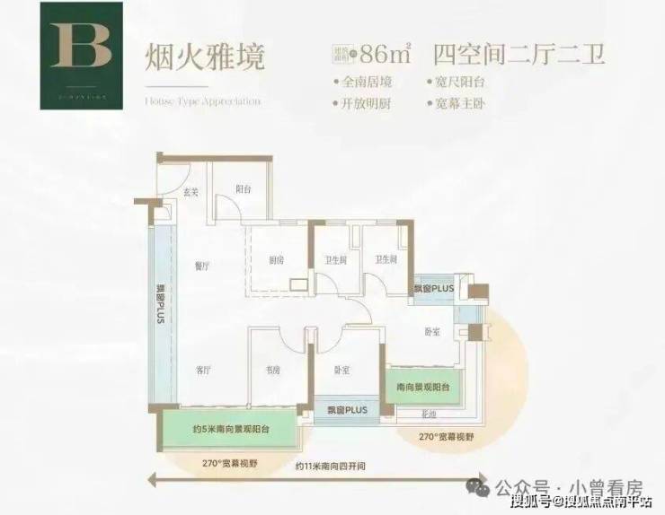 建面约86㎡园景四空间,比同等面积多享一间“房”,拥有比肩约110㎡的宽敞感与高舒适度布局。