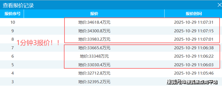 正式开拍, 1分钟3报价 !你方唱罢我等场,追得超猛!【11:07】最新报价34618.4万元,楼面价4753元/㎡。