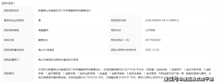 东侧一路之隔是 金石实验中学、石门中学(博爱湖校区) ,后者是 公办高中 ,10月14日曾发布招标计划,总投资超7.67亿,规划 90班 ,可容纳 4800名学生 ,预计 2027年9月投用 。