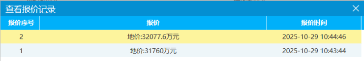 开拍前就出现了2个报价,【10:44】最新报价32077.6万元,楼面价4403元/㎡。