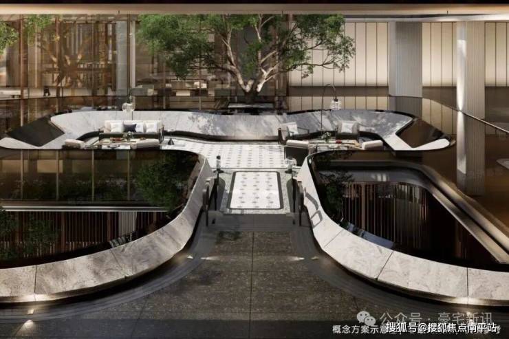 空间营造上,创新性构建“生机底盘”,通过“地上三层、地下三层”的立体复合结构,从地下空间到空中花园,车库、商业、园林与配套垂直叠加,形成一座“立体生活城”:地下层的“生境之斗”将阳光、绿植引入地下;