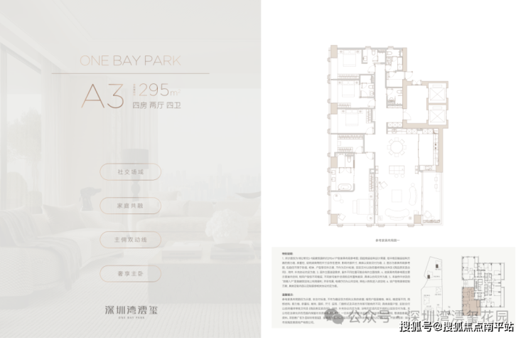 一席藏尽海/湖/园/城,四重盛景,踞守深圳湾畔约270°环瞰海景壮阔、湖境悠然、园景森氧、城脉璀璨的封面地脉。近享深圳人才公园,占地77万平方米,内湖面积约32万平方米,"公园生活圈"步行可达。(信息来源:深圳人才公园公众号)