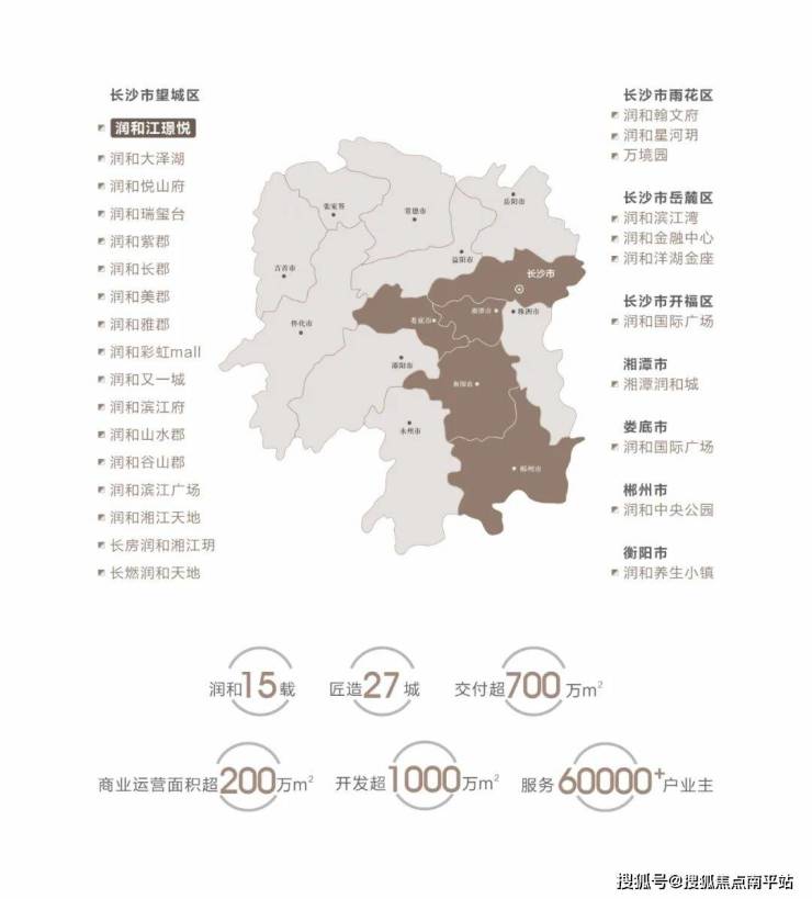 累计开发面积约1000万方,建筑施工面积约1000万方,商业招商运营面积约200万方,服务业主约60000户。2016-2023年,润和城销售势头强劲,销售面积连续多年荣膺位列长沙房企销售排名前列。