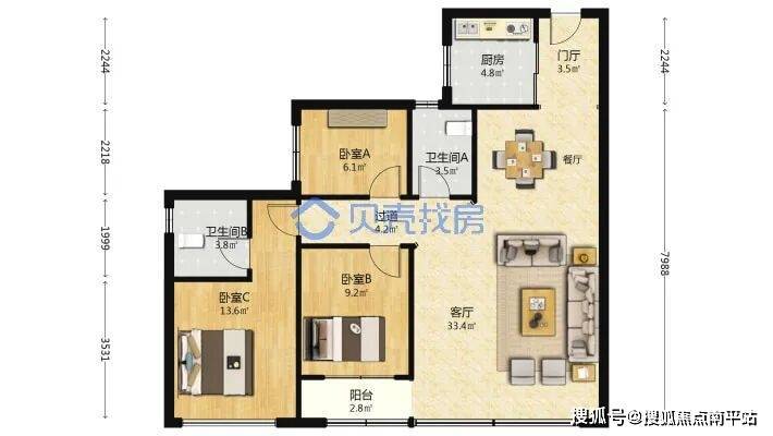 总结110的这两种户型,给购房者一个建议,110平朝南的户型,虽然这种户型的优势是光照和视野,因为南面靠学校,学校教学楼的高度在6层左右,所以楼层尽量选择7楼以上,才能越过学校的教学楼。这种户型在二次装修中,客厅的电视背景墙尽量简约,不要再做厚厚的柜子了,不然显得客厅更加狭小。另外一种110的户型,最好的位置是在3号楼,因为3号楼整栋都是竟配建(竟配建是清水房),如果不想要自己装修,可以选择9号楼的02户型,9号楼位于小区最东侧,02户型东南朝向,看出去是会展方向,高楼层还能看海景。在装修上,如果家里东西比较多,可以从入户门开始一直到客厅做一整面柜子,餐厅位置就不建议做餐边柜,不然餐桌不好摆放。110的户型总价目前在500万上下,能做到正规的三房两卫,比对面万科金域蓝湾的三房和学士里106的三房性价比都要高。
