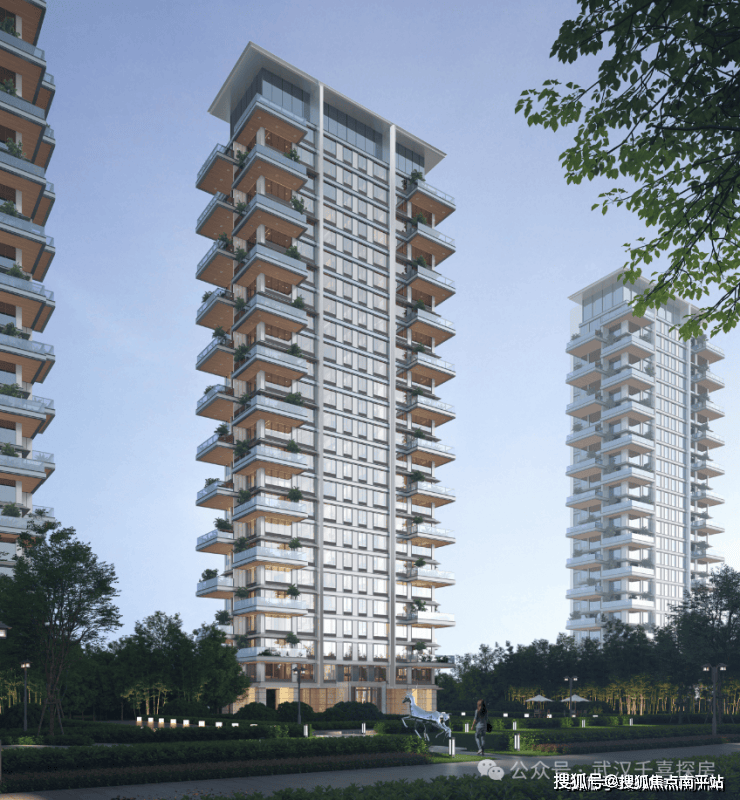 ☑ 设计理念|垂直森林立面 自然生态美学作为四代住宅,项目以“垂直森林 向上生长”为设计理念,提取楚风文化符号,中式飞檐,光幕艺术立面萦绕绿植,让建筑与自然无界融合。