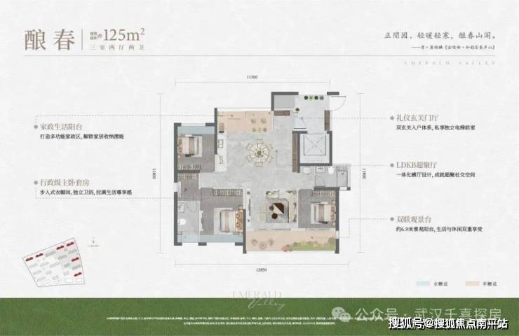 125平南北通透,主卧、次卧、客户三开间朝南,单独电梯入户,私密居住型更佳,主卧套内20平,步入式衣帽间,解决传统户型主卧柜子空间小,餐客厅功能区协调,无浪费面积.阳台半赠送+飘窗全赠送,拓展面积套内约110平,优化后实际得房率约95%,相当于三代住宅143的户型.