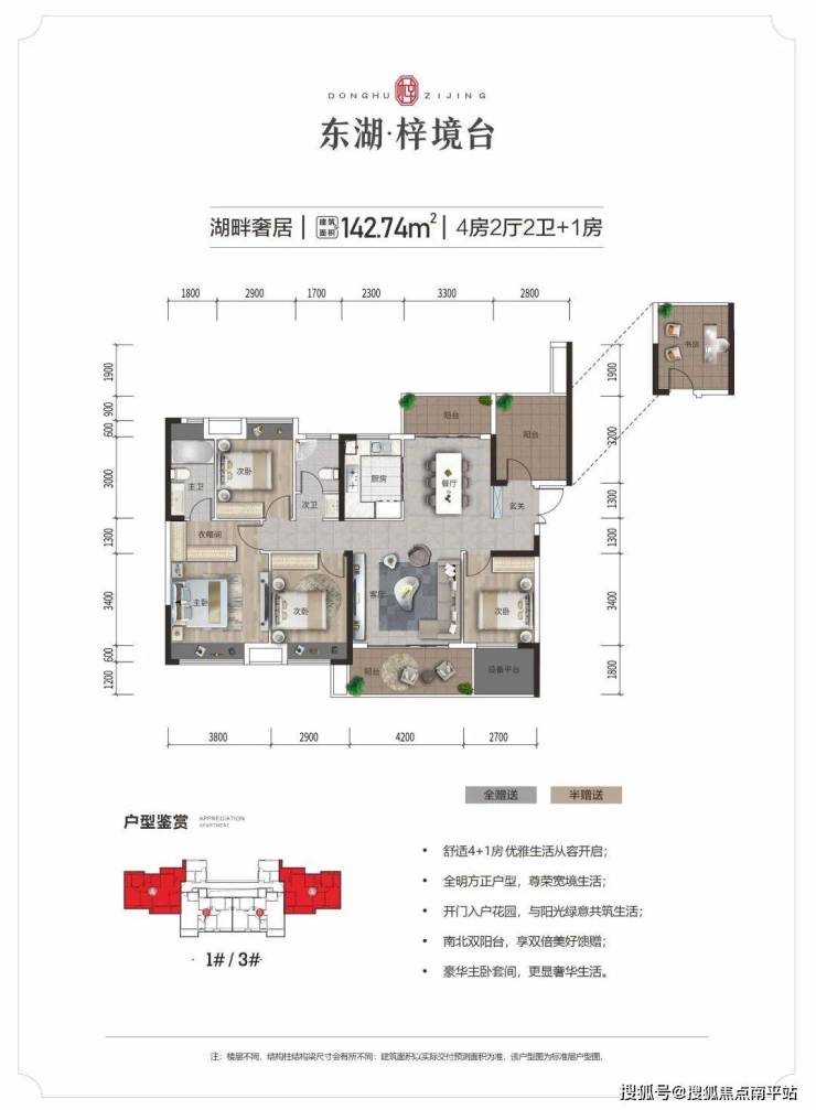 梯户比:两梯四户(1#3#)、两梯两户(2#)