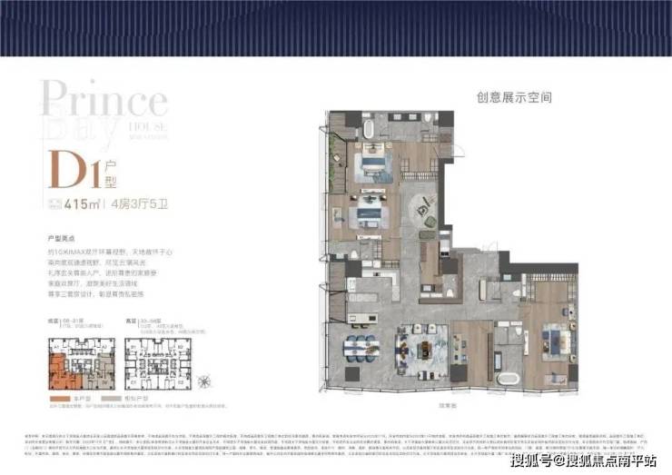大尺度空间 纵享环幕视野大平面大尺度定位,层高约3.6米,横厅设计确保最大化观景面全户型纵享环幕视野。项目打造主力建面约215-415㎡纯粹品质公寓共191席,顶层为建面约1270㎡公寓产品。