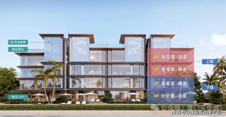 5-6层:上叠,建面约333㎡,客厅7米挑高,搭配双层星空露台,可越过别墅区直望五缘湾海景