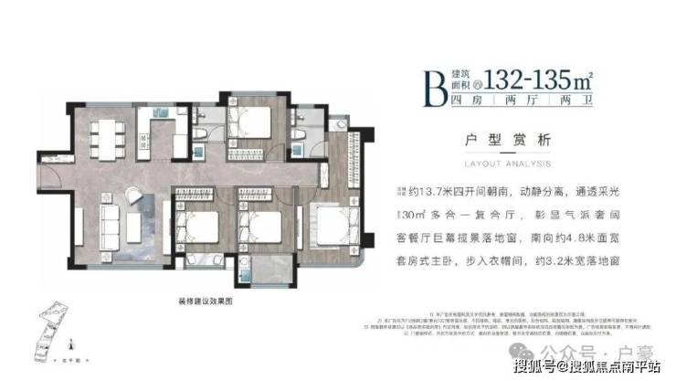 四居室113-194㎡ 南向5开间朝南,零浪费空间(如115㎡四房),全明格局,主卧飘窗 ;