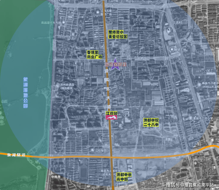 项目就在南昌主城青云谱,离地铁3号线江铃站很近,走路就能到。开车走南一环、象湖隧道,去朝阳、红谷滩都很方便。
