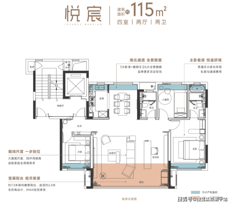 ·新规高使用率 :通过 全尺寸飘窗 、新规阳台使用拉满等拓展面积,每一寸都不浪费。就像这个洋房115平米的户型 ,6个全尺寸飘窗 全部用满,直接将使用率拉满。