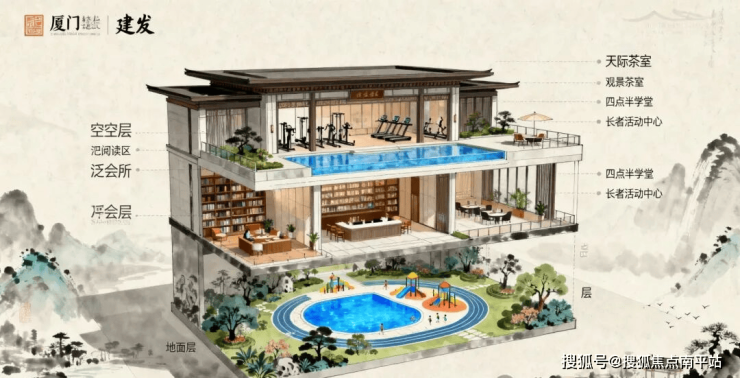 项目还超越传统学区房概念,构建“家校社”联动的教育生态:架空层泛会所设置儿童科学实验室与家长共享自习室;空中花园成为自然教育课堂,定期举办畲族节气主题活动;地下会所的恒温泳池、篮球场与私宴厅,满足素质教育的多元需求。