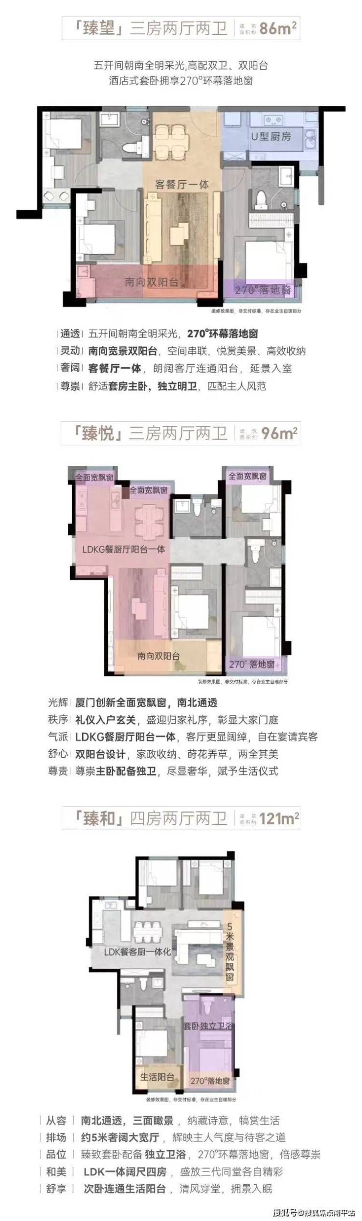 奢配南向双阳台+全景落地窗、厦门创新性全面宽飘窗、270°转角全景落地窗、LDKG餐客厨阳台一体化等越级设计,与厦门高阶圈层生活理想默契而合。