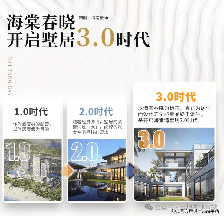 有天有地的墅居生活,才是海岛住假的理想人居形态。三亚海棠湾墅居开发,已历经三代开发历程。
