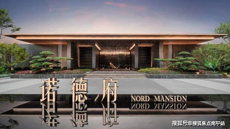 酒店式奢阔府门、迎宾罗汉松、星空穹顶、墨绿色艺术岩板
