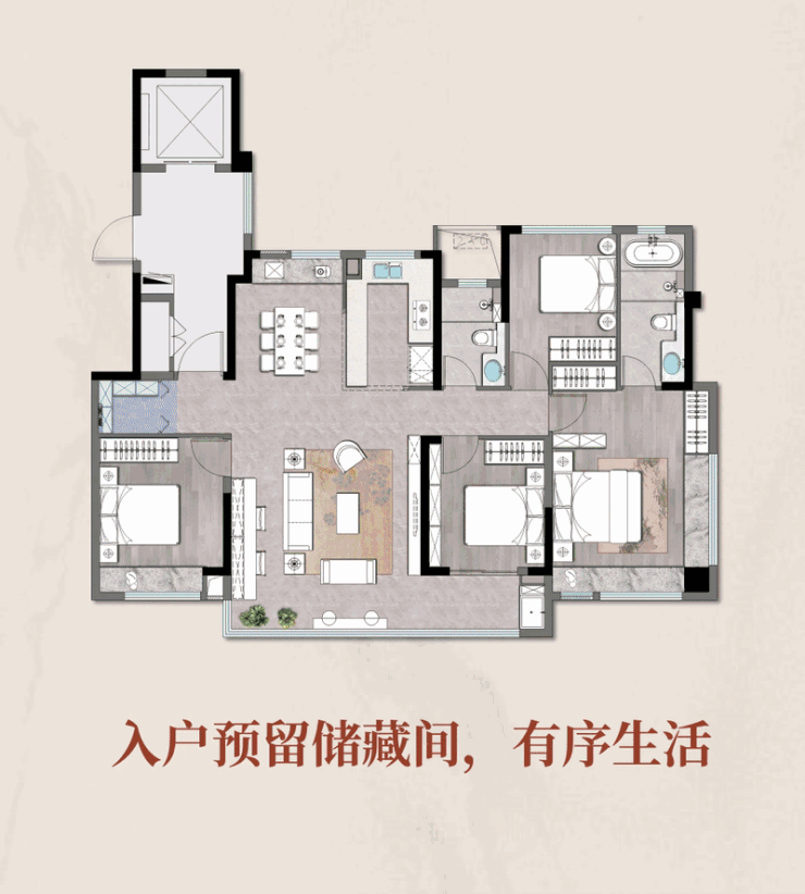 ● 走道尽端/主卫预留储藏区,可收纳/改造,盛放精致生活