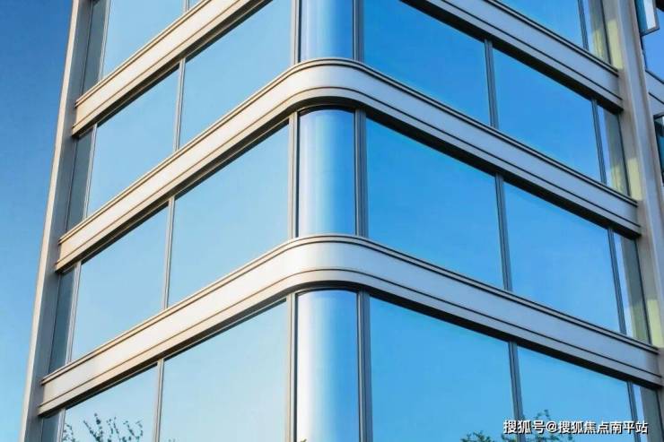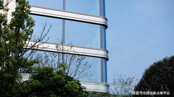采用大面宽玻璃幕墙搭配金属铝板线条,南地块客厅转角创新采用造价更高的弧形玻璃,以更高成本、更精密工艺,保证立面的美观性,勾勒轻盈、透亮的无界天幕。