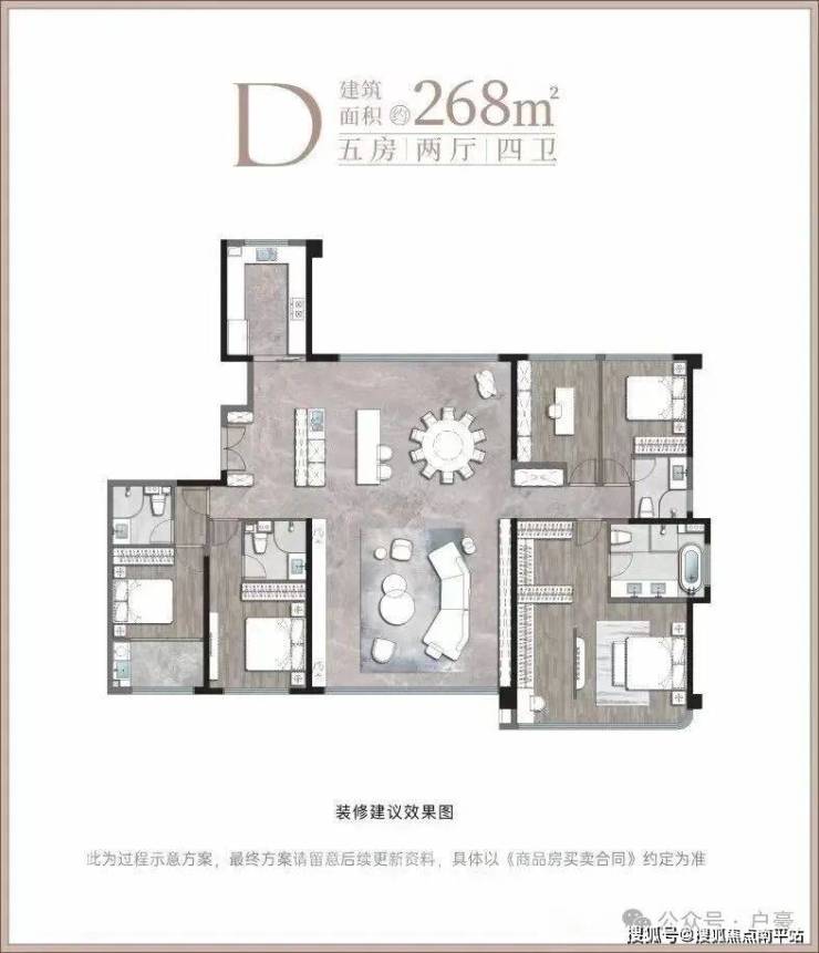 五居室 268㎡ 双套房设计,独立家政间,270°观景阳台,高端改善型家庭;