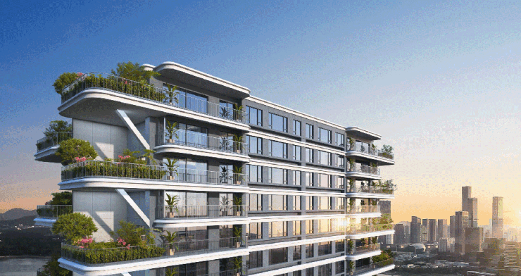 项目打造的是重庆两江四岸极核区唯一的头排亲江四代宅,由 8 栋住宅组成,规划为大平层和洋房,属于纯板式设计。
